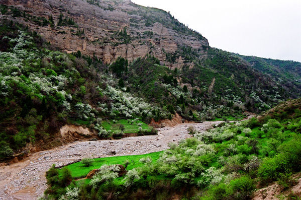 碧野在著名的《天山景物记》中记叙这样的场景:“春天繁花开遍峡谷,秋天果实压满山腰,每当花红果熟,正是鸟雀百兽的乐园”。“有这么一条野果沟,沟里长满野苹果,连绵五百里,春天五百里的苹果花开无人知,秋天,五百里成熟累累的苹果无人采,老苹果树凋枯了,更多的新苹果树茁长起来”说的正是大西沟。 大西沟座落在霍城县西北的大西沟乡境内,距县境50km。