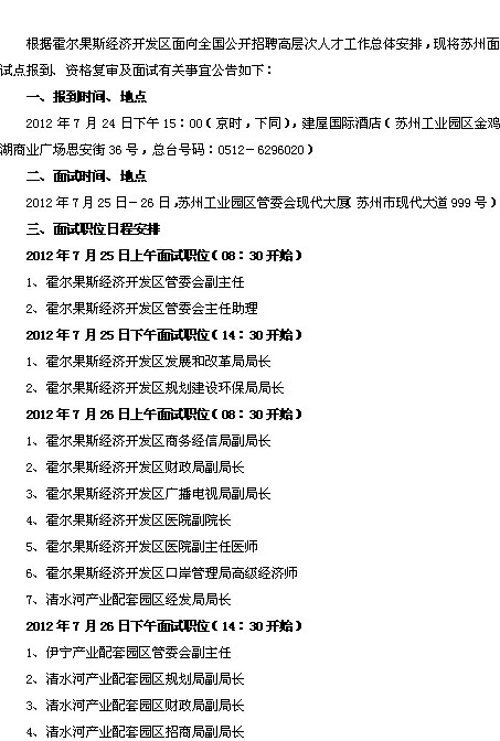 霍尔果斯经济开发区面向全国招聘高层次人才面试职位日程安排表