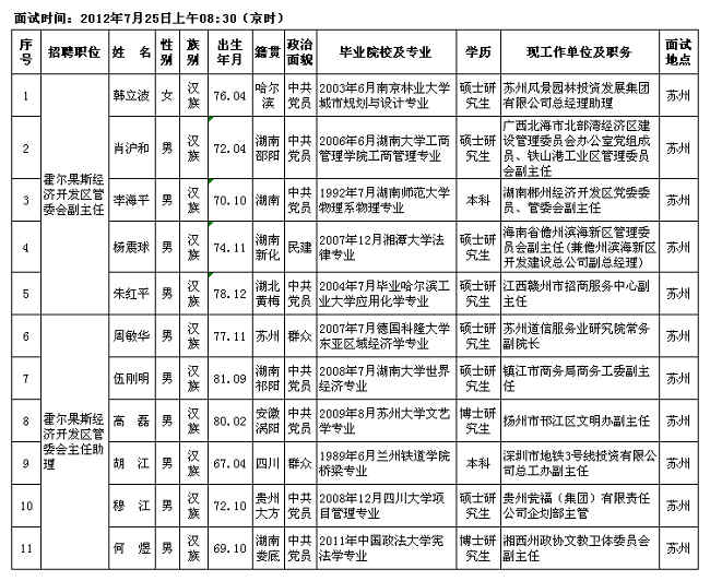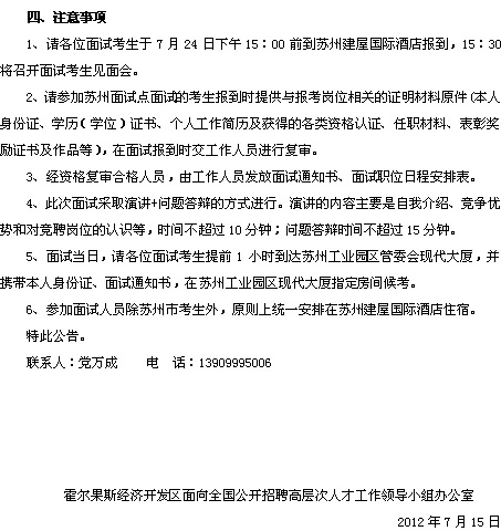 霍尔果斯经济开发区面向全国公开招聘高层次人才面试(苏州面试点)有关事宜公告