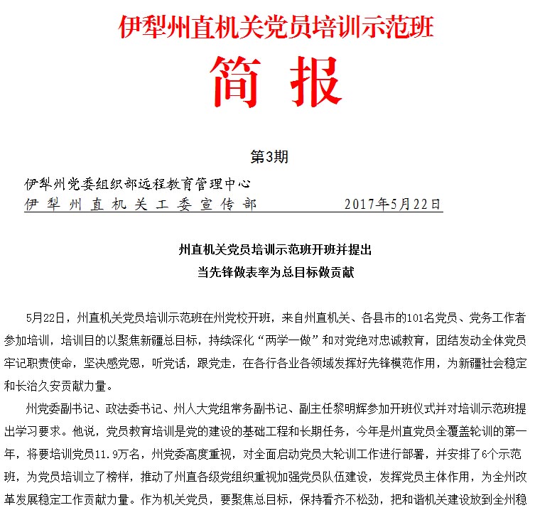伊犁州直机关党员培训示范班