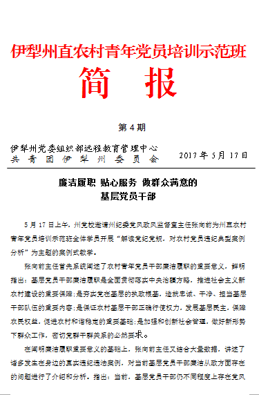 伊犁州直农村青年党员培训示范班学员发言稿四