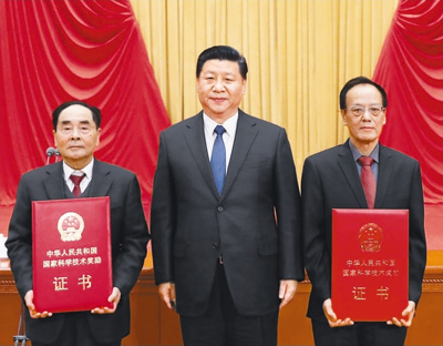 1月8日,国家科学技术奖励大会在北京人民大会堂隆重举行。党和国家领导人习近平、李克强、张高丽、王沪宁出席大会并为获奖代表颁奖。会前,习近平等党和国家领导人会见获奖代表并同大家合影留念。