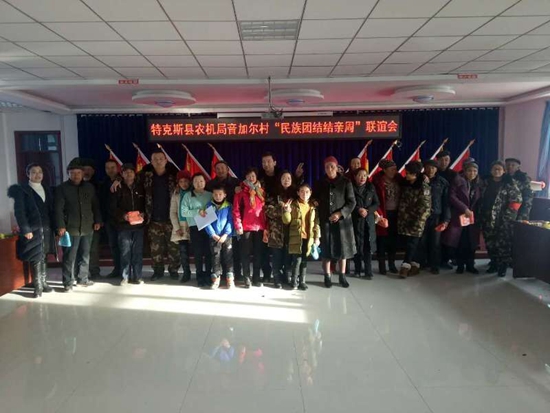 开展“民族团结一家亲”联谊活动。农机局积极联系民族团结一家亲联系村开展“民族团结结亲周”联谊会,活动包括为亲戚赠送礼物、唱歌、跳舞、共做游戏、合影留念等环节,大家载歌载舞,共享民族团结一家亲的快乐。当天恰逢农机局维吾尔族干部热合买提江·买买提同志51周岁生日,在场所有人为他举办了一个意义非凡的“民族团结一家亲”生日活动,热合买提江·买买提同志感动的热泪盈眶,他说:“这是我过的最有意义的一个生日,我会一辈子都记住,以后讲给我的儿子、孙子们听。”