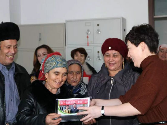 送礼物,一次结亲一生结缘。此次邀请的亲戚,有夫妻俩、姐妹俩、老奶奶,亲戚家里能来的人都到了,大家欢聚在一起欢度元旦,喜迎新年。联谊会为亲戚们安排了少数民族歌舞表演,精彩的都塔尔演奏、精湛的维吾尔族舞蹈,让大家大饱眼福,歌声、笑声、舞步声,使联谊会热闹非凡。吉里格朗村的亲戚们为了这次联谊会,特意为市文明办干部们准备了礼物,有自家炸的散子、做的奶皮子,还有漂亮的各色围巾、小花帽等礼物,干部和亲戚们一次次拥抱、一次次感谢,场面温馨感人,现场洋溢着浓浓的民族团结一家亲暖暖热情。一次结亲,终生结缘,全市干部职工与各族群众发自内心地“认亲、结亲、走亲”,形成“你中有我、我中有你,中华民族一家亲”的浓厚氛围。