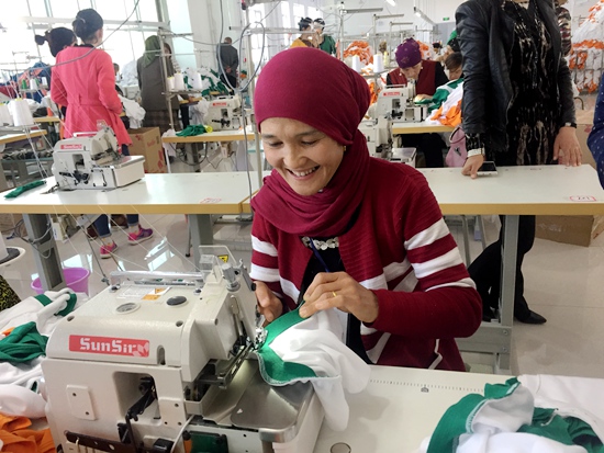 在工地上务工的艾孜买提·斯拉伊力满脸喜悦地说:“以前我就守着家里的那6亩地,一年到来头就收入几千块钱,现在好了,我把地承包出去可以挣3600元,我到工地上打工每个月4000元工资,我干七个月活就是28000元。我的妻子在‘双创园’服装厂上班,她每个月工资1200元,一年下来也有14400元。今年一年下来,家里就能收入近5万元,小日子越来越好了。”