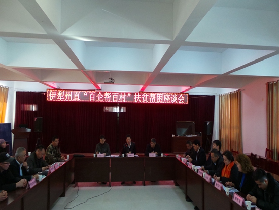 民营企业家“送温暖”扶贫帮困活动结束后,在县政协副主席、工商联主席余正虎的主持下,召开了州直“百企帮百村”扶贫帮困座谈会。会上,喀拉达拉镇党委书记周丹详细介绍了全镇基本情况及旅游发展规划情况;州供销社驻喀甫萨朗村工作队队长、第一书记肖克热提·阿不都热合曼介绍村基本情况和脱贫攻坚工作开展情况。