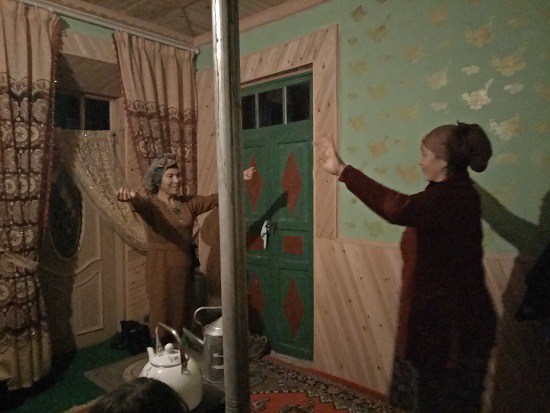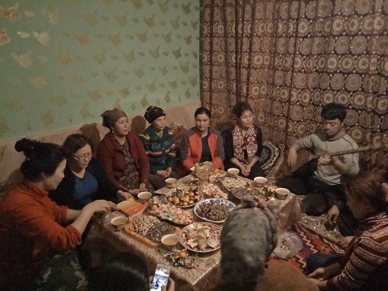 当夜幕来临,这里同样很精彩。“姐妹们,快来呀,住村亲戚要给我们宣传十九大精神”。家住阔村一队的女主人阿依吐尔汗从晚饭之后就“坐立不安”,打电话、摆桌子、洗水果,忙的不亦乐乎。为了贯彻此次“结亲周”活动部署要求,宣传贯彻落实十九大精神,州党校教职工独辟蹊径,以妇女为工作切入点,抓好妇女这半边天,提高其思想意识。最生动贴切的话语,最直接感人的事例,打开了妇女同志的话匣子。劳作一天的好姐妹聚在一起,畅聊美好生活,诉说今天幸福,感恩党的政策,说到动情之处,更是载歌载舞,用最质朴、最喜悦的方式表达内心的情感。