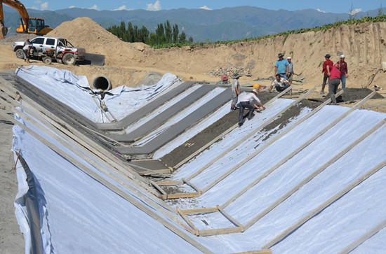 记者在阿勒玛勒镇塔克布拉克村看到,新投资修建的节水灌溉工程正在加紧施工,目前清水池和沉积池已基本完工。这个项目的开工建设将极大改善该村旱地浇水的情况,提高土地利用率。