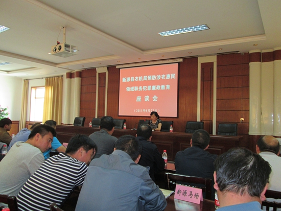 注重宣传教育,自觉规范自身行为。县农机局将农机购置补贴廉政与单位党风廉政建设有机结合起来,由局党组书记每季度带领全体领导干部进行党风廉政专题教育,组织全体领导干部到廉政教育基地进行廉政警示教育。今年8月份农机局组织各乡镇(场)分管领导、农机干事、农机局全体干部职工召开2015年新源县预防涉农惠民领域职务犯罪廉政教育座谈会,邀请县反渎职侵权局局长王爱华进行授课,用身边真实实例为大家带来一场生动而深刻廉政教育课。(新源县农机局 王春燕供稿)
