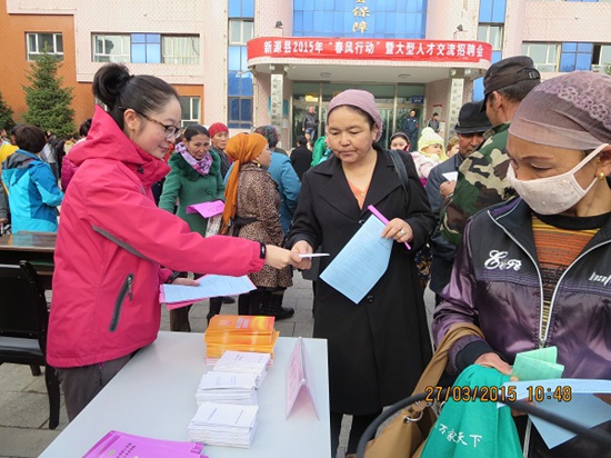 大型活动促就业。组建“就业服务大篷车”,深入全县77个村(社),开展“送岗位、送政策、送信息、送服务”进村入户活动。启动企业招聘周等专项行动,通过“春风行动”,分别在该县人社局、新源镇托海村、坎苏乡组织各类招聘29场次,提供岗位3200个,达成就业意向1351人。同时,开展就业相关政策的知识讲座,利用党员干部入户的契机,及时向群众宣传自主创业政策、贷款补贴办理等政策法规。(新源县人社局 唐安苏供稿)