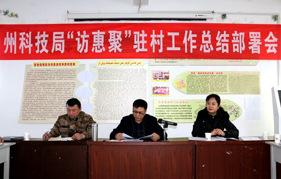 最后,局党组副书记、葛栋作总结部署讲话。对几名同志的发言表示了充分认可,对州科技局2017年“访惠聚”驻村工作作了简要总结,并对2018年“访惠聚”驻村工作讲了几点要求。一要提高政治站位。全面增强开展“访惠聚”驻村工作的政治担当和使命担当,鼓励全体工作队员们面对脱贫攻坚的艰巨任务和各族群众对“访惠聚”工作的新期待,要以更加坚定的决心、更加积极的态度、更加有力的措施,确保自治区、自治州党委 “访惠聚”驻村工作部署要求落地生根、见到实效。二要抓好贯彻落实。尽快进入工作角色,各组工作队员31日必须全员到岗,主动沟通对接,加快熟悉情况,尽快单位和工作队的“双向”工作交接,特别是做好档案交接、制定五年规划、整理重点难点问题清单和为民办实事承诺清单。三要严明各项纪律。严明政治纪律,自觉维护党委权威,服从领导主动担责,严格执行规章制度,自我约束,令行禁止。工作队长要带头维护好内部团结,工作队员之间相互关心、相互帮助,团结协作,形成工作合力,共同做好驻村工作。四要保证工作延续。2018年要继续跟进,重点围绕总目标,狠抓 “四项”工作任务,持续抓好扶贫攻坚工作。在完成脱贫任务的基础上,继续加强后续的巩固工作。进一步推进“民族团结一家亲”和民族团结联谊活动制度化常态化长效化建设,将结对认亲工作与扶贫帮困、“访惠聚”等工作有机结合,落实“五个一”工作,加强联系沟通,丰富活动载体,营造“民族团结一家亲”的浓厚氛围。