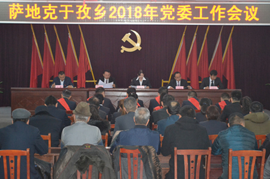 会议结束前,萨地克于孜乡党委书记号召,2018年萨地克于孜乡的各位领导干部要更加紧密地团结在以习近平同志为核心的党中央周围,在县委党委、人民政府坚强领导下,认真贯彻党的十九大和自治区党委九届四次全体会议、州党委工作会议及县委第十二届三次全委(扩大)会议精神,组织动员全乡各级党政和广大党员干部群众,进一步认清形势,明确目标,解放思想,奋勇争先,创新实干,为打造美丽富裕的宜居乡村而努力奋斗!(伊宁县萨地克于孜乡 班公实供稿)