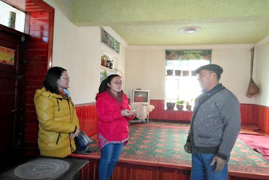 察布查尔县农业局驻坎乡齐格勒克村“访惠聚”工作队队长艾佳琼·迪力木拉提为了帮扶全村45户贫困户脱贫,带领工作队队员白天挨家挨户指导种植、养殖技术,晚上集中为贫困户讲解脱贫政策。