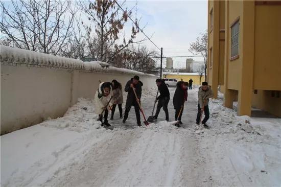 天寒地冻挡不住党员的热情,他们排着整齐的队伍走进了辖区巷道,大家干劲十足,团结协作,不顾天寒路滑,有的扫、有的铲、有的推、有的拉,齐心协力,呈现出一派热火朝天的扫雪场景。县农机局党组书记古丽斯娜依?木哈提拜说:“在社区‘大党委’组织下,每名党员向居民们亮出了身份,用实际行动解决群众生产生活中的困难,发挥了党员先锋模范作用。”