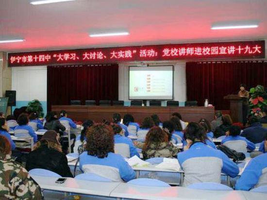 学生群体延伸学。利用团(队)课、班会课,结合不同年龄段学生的认知特点组织专题学习1800场,推动党的十九大精神进学校、进班级,把党的十九大精神讲清楚、讲明白。名师讲堂专题学,邀请市委党校高级讲师马晓婷老师开展“党的十九大精神宣传”教育专场示范宣讲活动,各学校党组织书记、副书记、党办主任120人参加。随后,各学校以学校为单位开展了主题宣讲活动,让党的十九大精神在校园落地生根、入脑入心。(伊宁市教育局 张雅伦供稿)