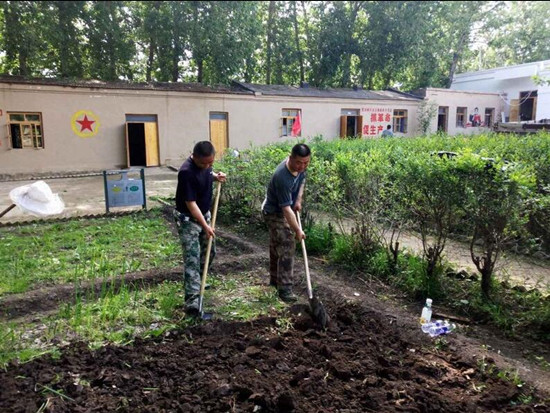 镇机关干部在知青馆院内种植农作物