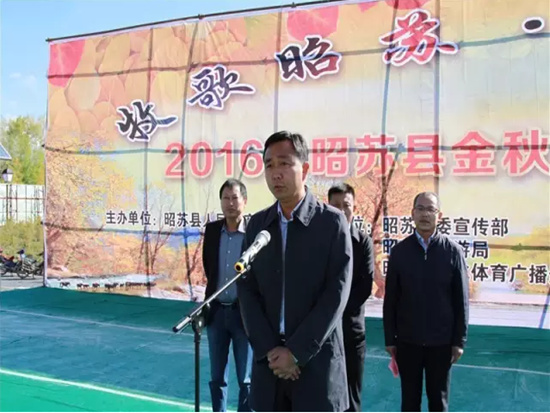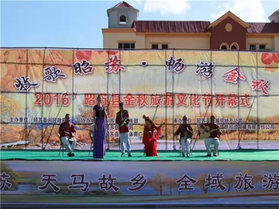 2016’昭苏县金秋旅游文化节由昭苏县人民政府主办,县宣传部、旅游局、文广局协办,县晟翰房地产公司、县全域旅游投资发展有限公司承办。此次活动主题为牧歌昭苏、畅游金秋。活动包括金秋摄影大赛、民族现代服饰设计展示、旅游商品展、金秋赛马活动、“拉克”美食节、环赛马场自行车赛、秋收农事活动体验、A级景区最美秋景评选、昭苏吉祥物故事征集、2016国际哈萨克库热斯邀请赛等活动项目。利用丰富的旅游资源,实现“一季一主题”的品牌活动打造,将产业资源与旅游节庆活动结合起来,带动昭苏县的经济发展,提升昭苏县知名度。