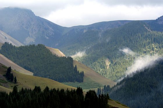 名闻遐尔的果子沟始于312国道乌伊公路的松树头。果子沟清代称塔勒奇沟,亦称塔勒奇达坂。“塔勒奇”准噶尔语,柳树。它纵贯北天山,全长36km,是伊犁的天然门户。自古以来是通往中亚、欧亚丝绸之路的北道咽喉,有“铁关”之称。元太祖十三年(1218)成吉思汗西征中亚,率其30余万铁骑从蒙古草原西出金山(阿尔泰山)南下直趋伊犁附近的“不剌城”(博乐一带),当时这支征旅“车帐如云,将士如雨;马牛被野,兵甲赫天;烟火相望,连营万里;千古之威,未尝有也”,当时秋天即将临近,大军必须迅速通过高耸的中部天山支脉塔尔奇岭,命二太子察合台负责率军民凿石理道、修路引溪、伐木筑桥四十八座,使十余万人马安全通过果子沟天险,将果子沟辟为大道。蒙古骑兵如暴风雨,如入无人之境,横扫中亚和西亚,建立了地跨欧亚的草原大帝国。