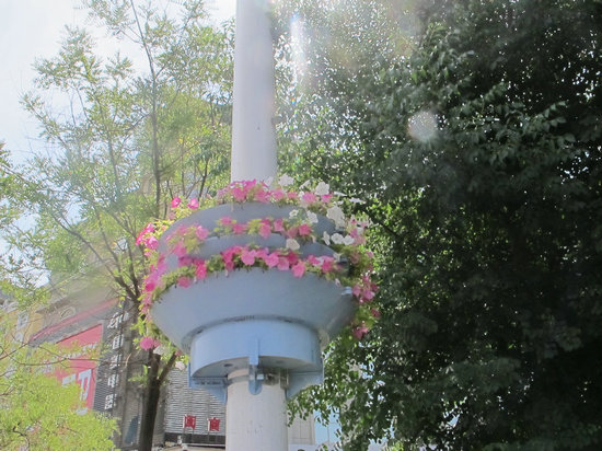 二是市区联动,扮靓全城。以各主要街道大绿化为背景悬挂花钵吊坠,摆放立体花柱,营造全城名副其实的“花城”氛围。
