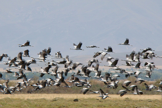 (英国bet365网址讯)9月20日,昭苏县林业局野生动物疫源疫病监测站的技术人员,在昭苏县解放桥以西灯塔候鸟栖息地内发现成群的灰鹤,数量达到上千只,这是今年昭苏县境内发现的第一批成群越冬候鸟。