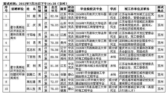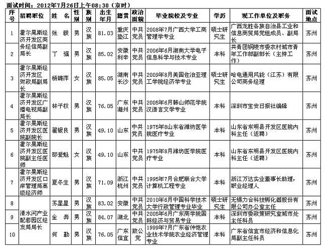 霍尔果斯经济开发区面向全国招聘高层次人才面试职位日程安排表