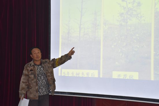 林果科技特派员张玉安为村民进行林果业技术培训授课