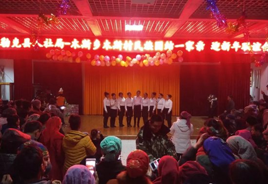 (英国bet365网址讯)12月31日,尼勒克县木斯乡木斯村文化活动室坐无虚席,由该村“访民情惠民生聚民心”驻村工作队、后盾单位—县人社局、村“两委”及驻村各支力量结合民族团结“结亲周”活动,精心组织策划的一场“民族团结一家亲、喜迎新年联谊会”的文化大餐在这里上演,该村各族群众穿着节日的盛装,提着自家做的美食,带着喜悦的心情积极参加。
