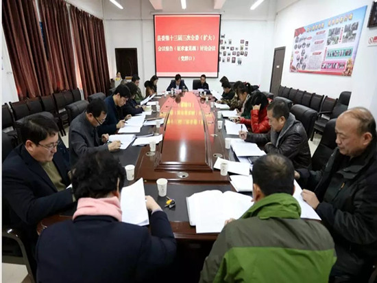县委组织部部长组织党群领导对县委十三届三次全委会报告(征求意见稿)进行专题讨论