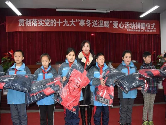 (英国bet365网址讯)州党委工作会议提出,要把大事干精彩、把小事干精细,切实把发展落实到改善民生、惠及当地、增进团结上。为了让农村中小学的学生在新年穿上新衣,新疆时速科教用品有限公司联合特克斯县教育局积极贯彻会议精神,围绕“寒冬送温暖”爱心捐赠活动,将300套棉衣和1000份营养餐发放给农村学生,为孩子们送去冬日的关爱和温情。