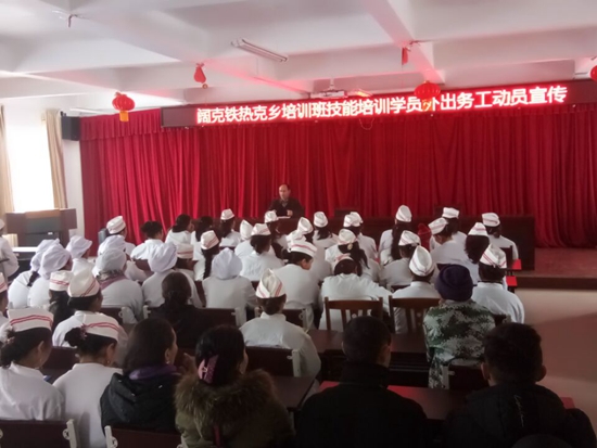 1月17日,特克斯县人社局在阔克铁热克乡萨尔阔布村开展培训学员外出务工动员大会,由各行各业组成150余名培训学员参加,优秀劳务经纪人多力洪江·提列娃德成为大会的主角。