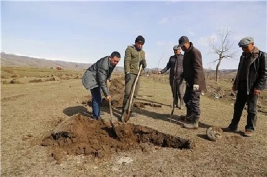 工作队和群众一同植树