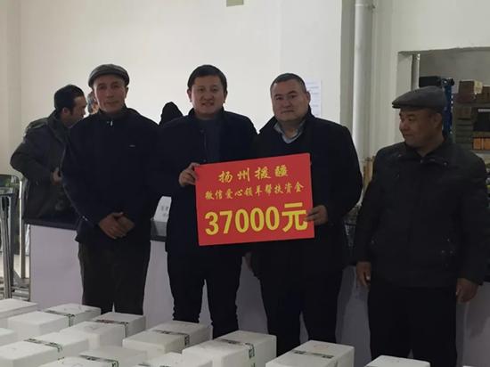 据了解,扬州援疆干部通过调研走访,了解到部分贫困户饲养的羊存在销售难,价格低的问题,为解决贫困户养羊销售难的问题,扬州援疆干部在微信朋友圈发起爱心羊领养活动,将贫困户的小羊让社会上的爱心人士领养,每只支付领养订金300元。援疆干部联合贫困户以图片、视频等形式实时为爱心人士提供该爱心羊羔生长状况。待羊羔长大出栏时,援疆干部与贫困户一起,将羊羔宰杀处理并免费邮寄给爱心人士,爱心人士收到羊羔后支付剩余领养费700元。