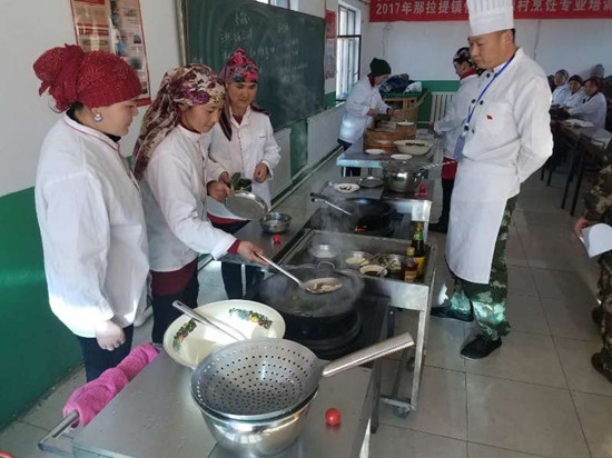 宣传摸底工作早进行。此次技能培训班主要面向农村富余劳动力和贫困人口展开,在新源县11个乡镇进行了为期45天的前期宣传和摸底,确定了包括砌筑、铲车、电工、中式糕点、客房服务等14个工种、46个班的技能培训工作。