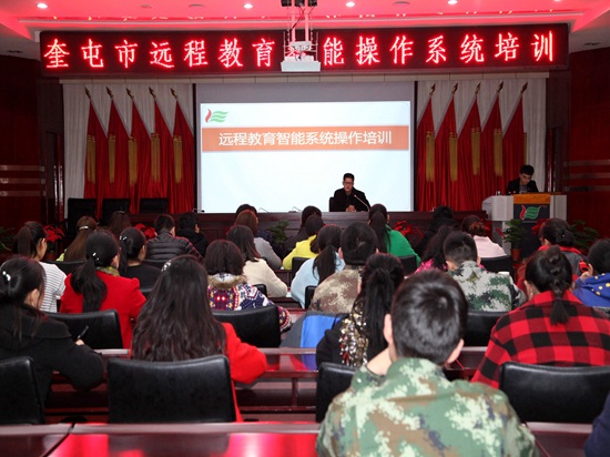 强化远教培训管理。奎屯市远程教育管理中心结合远教工作重点和计划,组织全市街道(乡)、社区(村)远教专干AB岗参加集中培训,由远教中心负责人对远教工作的理论知识进行详细讲解,并定期深入全市6个街道(乡)、42个社区(村)站点进行点对点、面对面、一对一指导培训,重点培训远教设备的使用和故障排查,为远教站点正常运行提供有力保障。截至目前,累计组织集中培训2次,参训人数120余人。